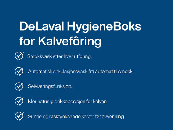 Høsten 2021 lanserte DeLaval nyheten DeLaval HygieneBoks for Kalvefôring, og Skjerve er første i Norge som har fått dette i fjøs.