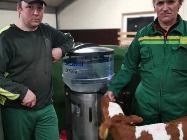 De har tidligere hatt kalvefôringsautomat på gården, men den ble slitt og måtte byttes ut. da prøvde de en periode og kun ha melkebar, men fant fort ut at de måtte ha automat.
