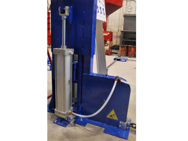 Drives av trykkluft. Forsikrer at kjettingen alltid er spent, for å minske risikoen for at den tvinner seg.