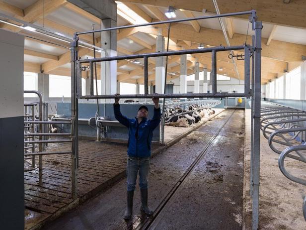 Vertikalgrinden kan enkelt låses i øvre posisjon, slik at dyrene kan passere uten hindring. Grinden er ideell for midlertidig inndeling av dyr, som til melking.