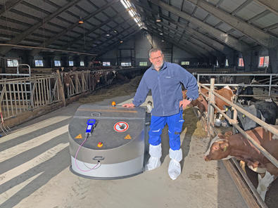 DeLaval OptiDuo™ er ikke bare en «feedpusher», men noe mer! OptiDuo™ har en dobbel (Duo) effekt som gjør at vi blander fôret og skyver det inn mot spiseplassene til dyra. Dette gjør at kyrne alltid vil finne friskt og godt fôr på sin spiseplass.