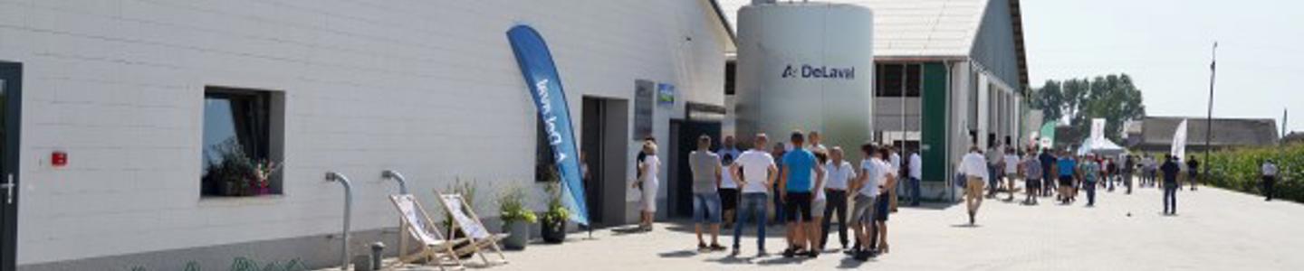 Obok obory postawiono budynek o wymiarach 26,5 x 59 m, w którym znajduje się dojarnia, pomieszczenia towarzyszące, poczekalnia, kojec zabiegowy oraz porodówka ze separatkami. Na porodówce znajduje się 6 poziomych mieszaczy powietrza. Na poczekalni również zastosowano system zraszania krów połączony z pionowymi suszarkami. Dój odbywa się na dojarni karuzelowej DeLaval E300 o 40 stanowiskach. Czas doju stada liczącego 220 krów trwa teraz około 1h 30 min. Dojarnia wyposażona została w najnowsze możliwe rozwiązania, takie jak: