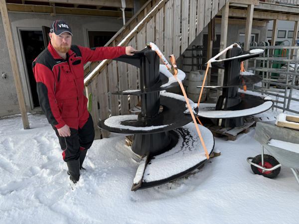 Den 19 m³ stora mixern har två skruvar, och Åshagen har upplevt att dessa har gått av i svetsen och blivit böjda. De har hållit efter att de svetsats om, men han har bestämt sig för att byta dem. När vi var på besök stod två nya skruvar redo utanför ladugården. Anläggningen var ur drift eftersom Åshagen förberedde bytet, och det var då han insåg hur viktig blandningen är för foderkvaliteten och foderintaget i ladugården.