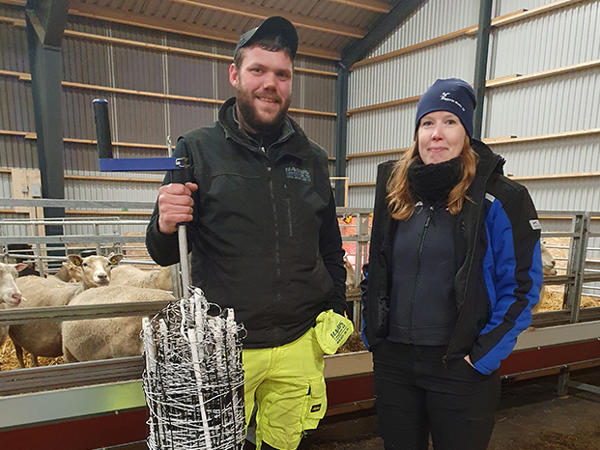 Paret hade redan börjat med får som hobby för 8 år sedan. Då började de med 25 tackor och sålde köttlådor i gårdens butik. Efter en tid gick de över till att sälja lammköttet till Scan och insåg vilket sug det var efter just lamm. Nu när båda ville jobba hemma på gården bestämde de sig för att satsa större och började rita på ett fårstall f ör 400 tackor med lamm. Planen var att bygga under 2021 men det drog ut på tiden på grund av corona, berättar Gustaf. Det var svårt att få offerter. Till slut fick vi tag på en lokal byggare som vi fick förtroende för. Första spadtaget togs i februari 2022 och i november 2022 stod stallet klart att ta emot tackor. Vi hade sålt vår hobbybesättning och köpte nu in MV-fria djur från fyra olika gårdar. Vi har satsat på en svensk lantras med fin ull och en del är korsning med en köttras. Målet är att ta fram bra slaktlamm och Scan är mycket intresserade. Nu är vi mitt inne i den första stora lamningen.