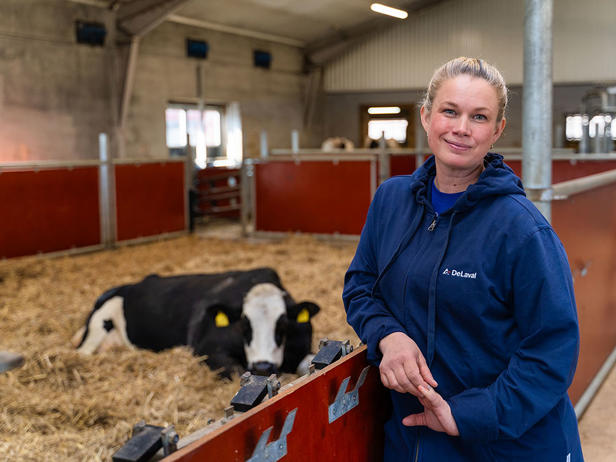 – Den dåvarande säljaren på DeLaval, Fredrik Pettersson, nappade direkt när vi ringde och berättade om vår idé. Vi hittade nästan ingen information om ko/kalvsystem så vi fick rita efter eget huvud och det blev bra. 2021 var bygget klart och vi kunde dra igång ko/kalvsystemet. I samband med bygget så bytte vi också vår VMS Classic mot en VMS V300.
