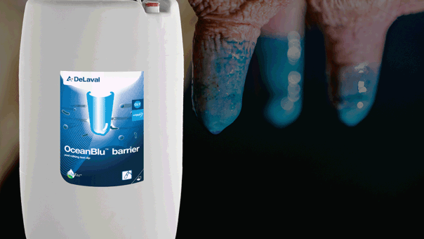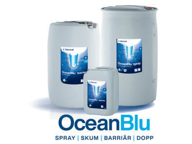 Nyckeln till OceanBlu™-barriären är en tydligt klarblå färg i kombination med DeLavals barriärteknologi. Detta resulterar i en långvarig ihållande blå film som skyddar kornas spenar mellan mjölkningarna.