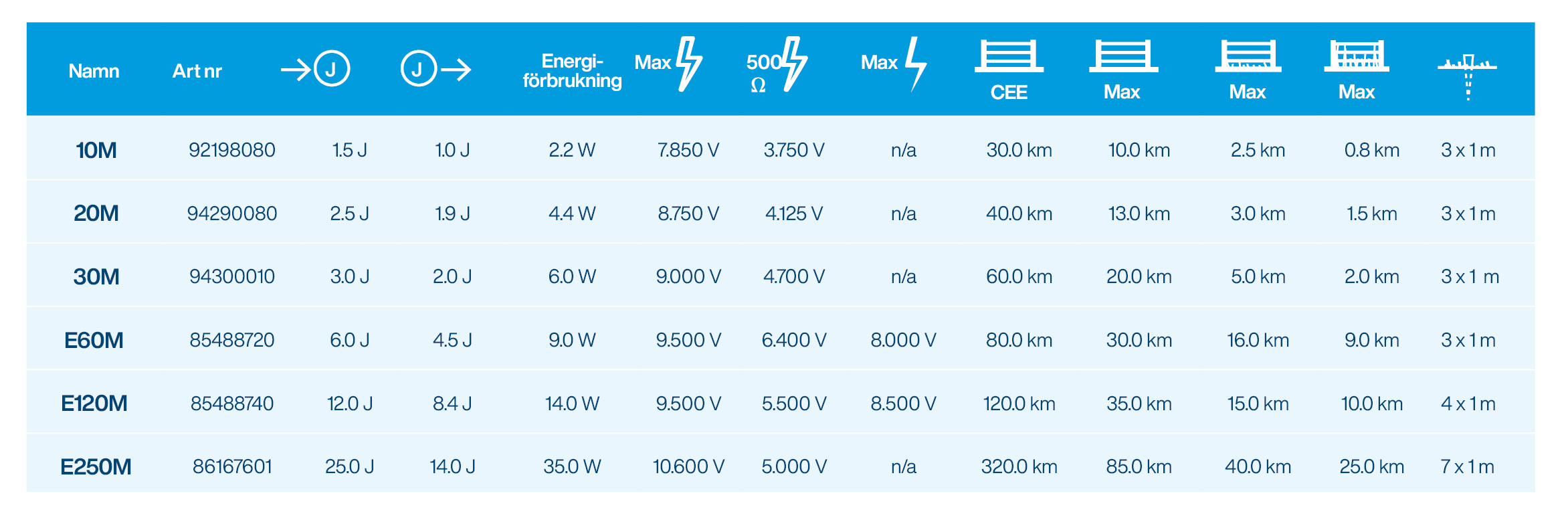 Max teoretisk stängsellängd | Max teoretisk stängsellängd 80 km, i svåra förhållanden: 9 km. |