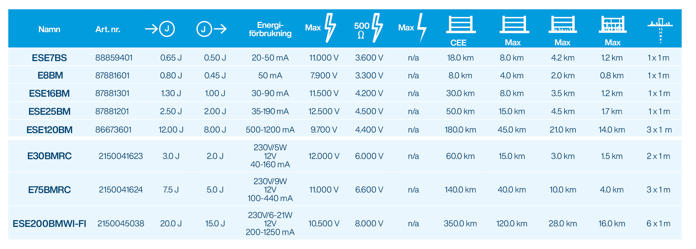 Energiförbrukning | Energiförbrukning 14 W. Beroende på stängselförhållanden kan energiförbrukningen variera från 500-1200 mA. |