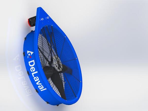 DDF1500 är en kylfläkt för mjölkkor. Med riktad hög lufthastighet mot kon hjälper det till att förhindra värmestress under varma perioder. Genom att undvika värmestress kan kon upprätthålla mjölkproduktion, fertilitet och foderintag. Med den senaste vingfläktteknologin i kombination med DeLavals unika ram är energieffektiviteten i toppklass. Fläkten kan drivas med på/av-funktion eller med frekvensstyrning.