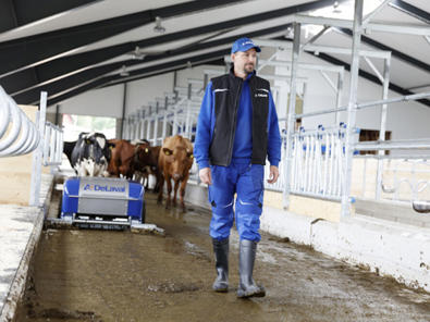 Kombinationen låg hastighet (6,5 m/min) och tystgående motor gör att DeLaval robot collector kan rengöra ditt stall utan att störa besättningen.