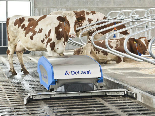 DeLaval gödselrobot är utformad i storlek och hållfasthet så att den kan rengöra stora ytor i en enda runda. Tack vare dess vikt på 420 Kg störs inte roboten av djuren i stallet. Robotens stora batterier möjliggör för långvarig drift med en effektiv rengöring 60% av dagen.