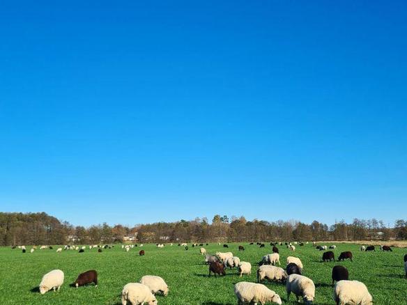 Paret hade redan börjat med får som hobby för 8 år sedan. Då började de med 25 tackor och sålde köttlådor i gårdens butik. Efter en tid gick de över till att sälja lammköttet till Scan och insåg vilket sug det var efter just lamm. Nu när båda ville jobba hemma på gården bestämde de sig för att satsa större och började rita på ett fårstall f ör 400 tackor med lamm. Planen var att bygga under 2021 men det drog ut på tiden på grund av corona, berättar Gustaf. Det var svårt att få offerter. Till slut fick vi tag på en lokal byggare som vi fick förtroende för. Första spadtaget togs i februari 2022 och i november 2022 stod stallet klart att ta emot tackor. Vi hade sålt vår hobbybesättning och köpte nu in MV-fria djur från fyra olika gårdar. Vi har satsat på en svensk lantras med fin ull och en del är korsning med en köttras. Målet är att ta fram bra slaktlamm och Scan är mycket intresserade. Nu är vi mitt inne i den första stora lamningen.