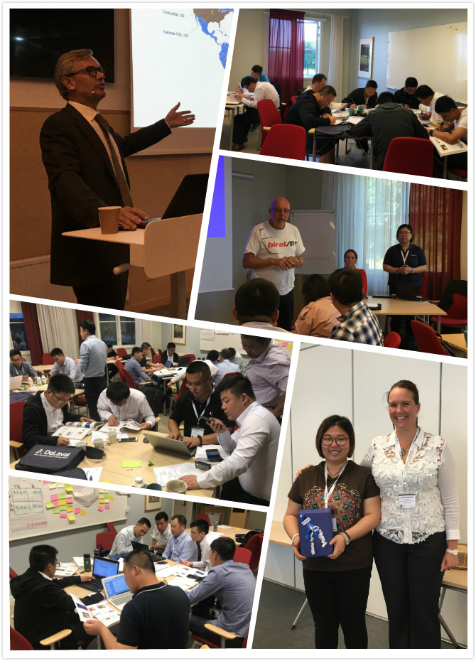 本次瑞典培训由利拉伐全球总裁Joakim Rosengren的欢迎致辞开始,安排了牧场规划、牧场管理、围产期奶牛管理、奶牛舒适、蹄部健康、牛奶质量KPI、粪污管理、生物安全等与牧场经营管理实践密切相关的理论培训,并安排学员们就所学话题进行分析研讨和报告。