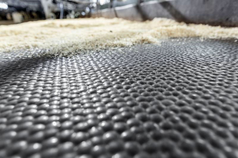 牛舍中休息区的重要性不言而喻,其中橡胶垫和牛床垫是休息区质量的重要保证。这款沙子填充的黑色蜂窝状卧栏衬垫可为奶牛提供自然健康的休息体验。它安装简便,结实耐用(耐酸性强),奶牛受伤风险小,维护成本低,是散栏式牛舍的理想解决方案。